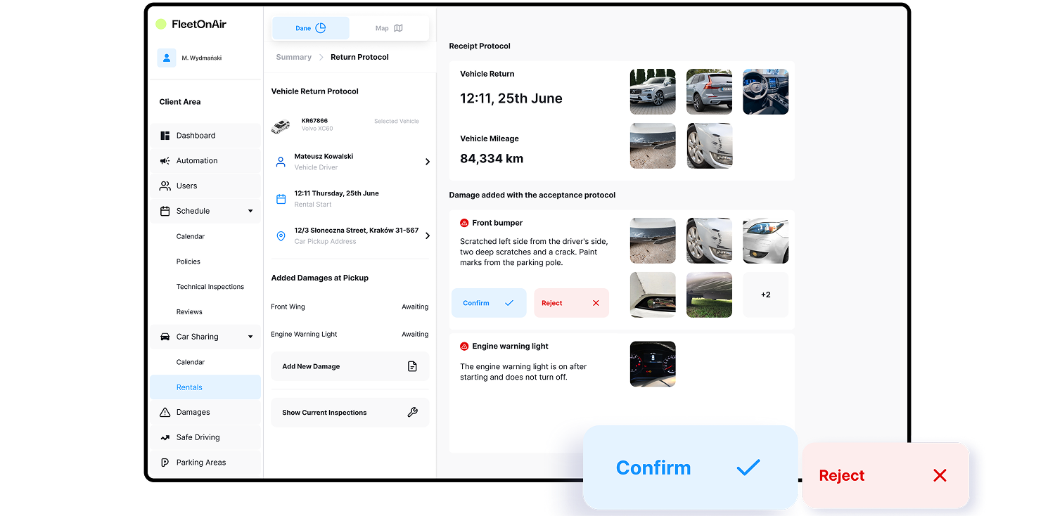 If a warning light appears or there’s a minor issue, the driver reports it in the app. In the web console, the manager decides whether to service, temporarily remove from the pool, or dispatch a replacement vehicle. This reduces downtime and streamlines maintenance.