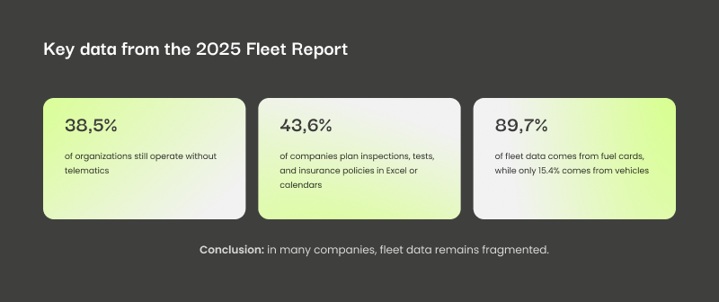 The starting point is clear: in many organizations, fleet data remains fragmented and the full picture of costs is incomplete. Research conducted for the Fleet Report shows that: