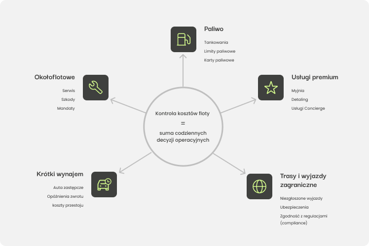 W każdej flocie prędzej czy później pojawia się ten sam problem: koszty zaczynają rosnąć nie dlatego, że „wszyscy oszukują”, tylko dlatego, że przy braku jasnych zasad system sam tworzy pole do nadużyć. Najbardziej widać to w obszarach powtarzalnych, trudnych do ręcznego pilnowania i jednocześnie „miękkich” w odbiorze pracownika: paliwo, usługi premium (myjnia/concierge), wyjazdy zagraniczne oraz auta „tymczasowe” z krótkiego wynajmu.