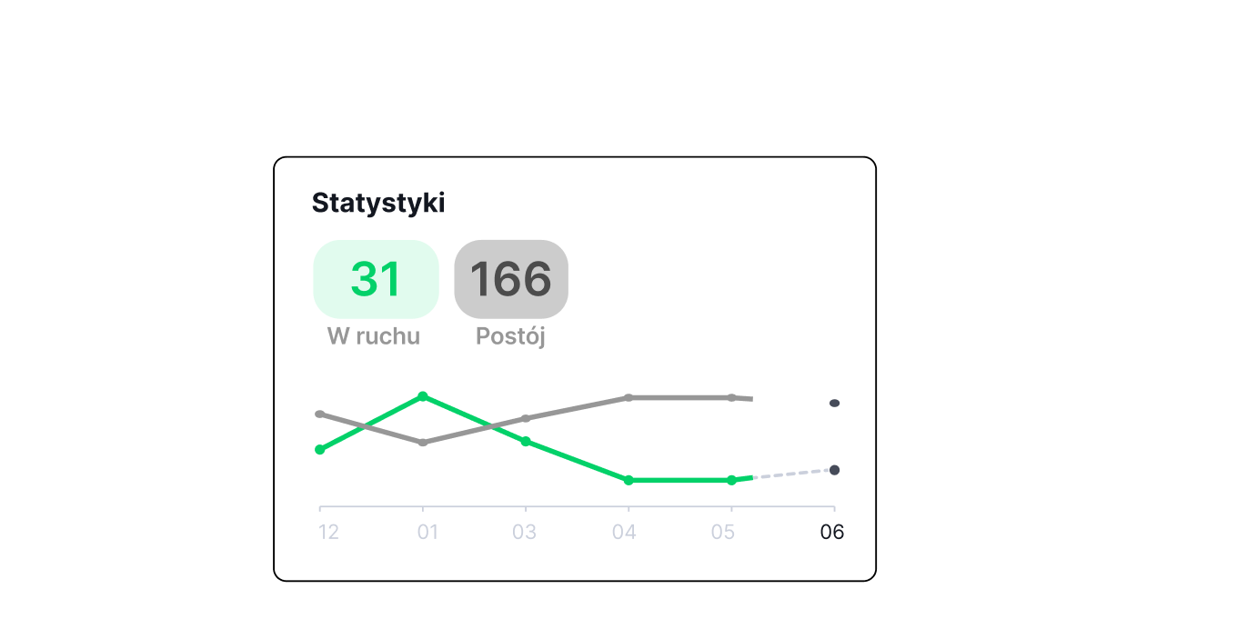 Każdy pojazd widoczny na mapie w czasie rzeczywistym – z dokładnością GPS i aktualizacją co kilka sekund. Widok aktywności floty dostępny w panelu i aplikacji mobilnej.